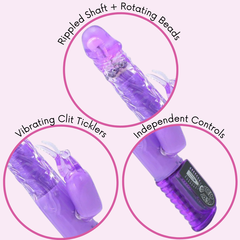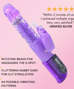 Ride the rotating waves of this rabbit vibrator for explosive. gushing climaxes! The stimulating rippled shaft has rows of non-jamming rotating beads and a realistic. sculpted head that rotates against your . The soft rabbit ears of this tickle your clit with powerful vibes designed to make you cum again and again!