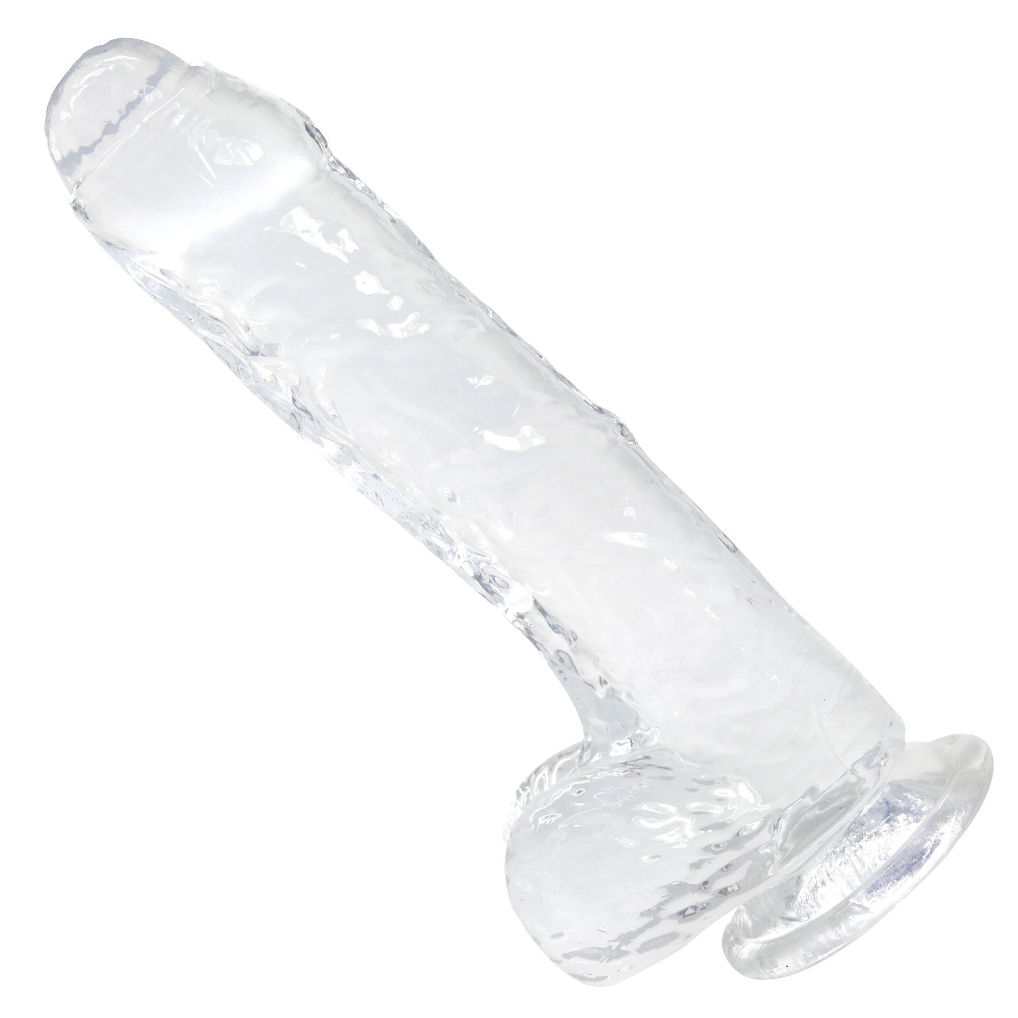 This sculpted uncircumcised dildo with balls features a generous 8.5 long shaft that will fill you up and satisfy your cravings for a long and thick cock! It’s super flexible so it contours to your body with every move for the ultimate satisfaction! The raised veins add thrilling sensations and heighten your arousal as you thrust in and out while the balls provide incredible external stimulation! It features a strong suction cup base that sticks to any flat surface for an effortless hands-free ride you’ve been dreaming about! This clear jelly dildo is perfect for anyone who wants a realistic feel toy with a thick tip to achieve gushing G-spot orgasms!