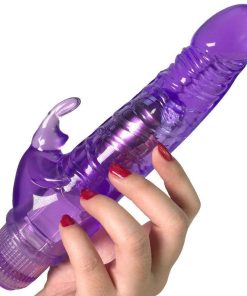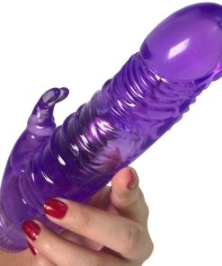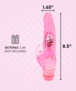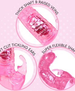 If you’ve had trouble having an orgasm. or are looking for a better toy. this vibrating rabbit will make you climax with two kinds of vibrating stimulation at the same time! Great for beginners to dual-stimulation. this vibe has a simple design that packs plenty of power to please both your internal and external pleasure points! A generous veined jelly shaft starts with a bulb-rounded tip for easy entry and leads to the bonus rabbit with a nubby nose and long ears that teases and thrills your clit with each vibration!