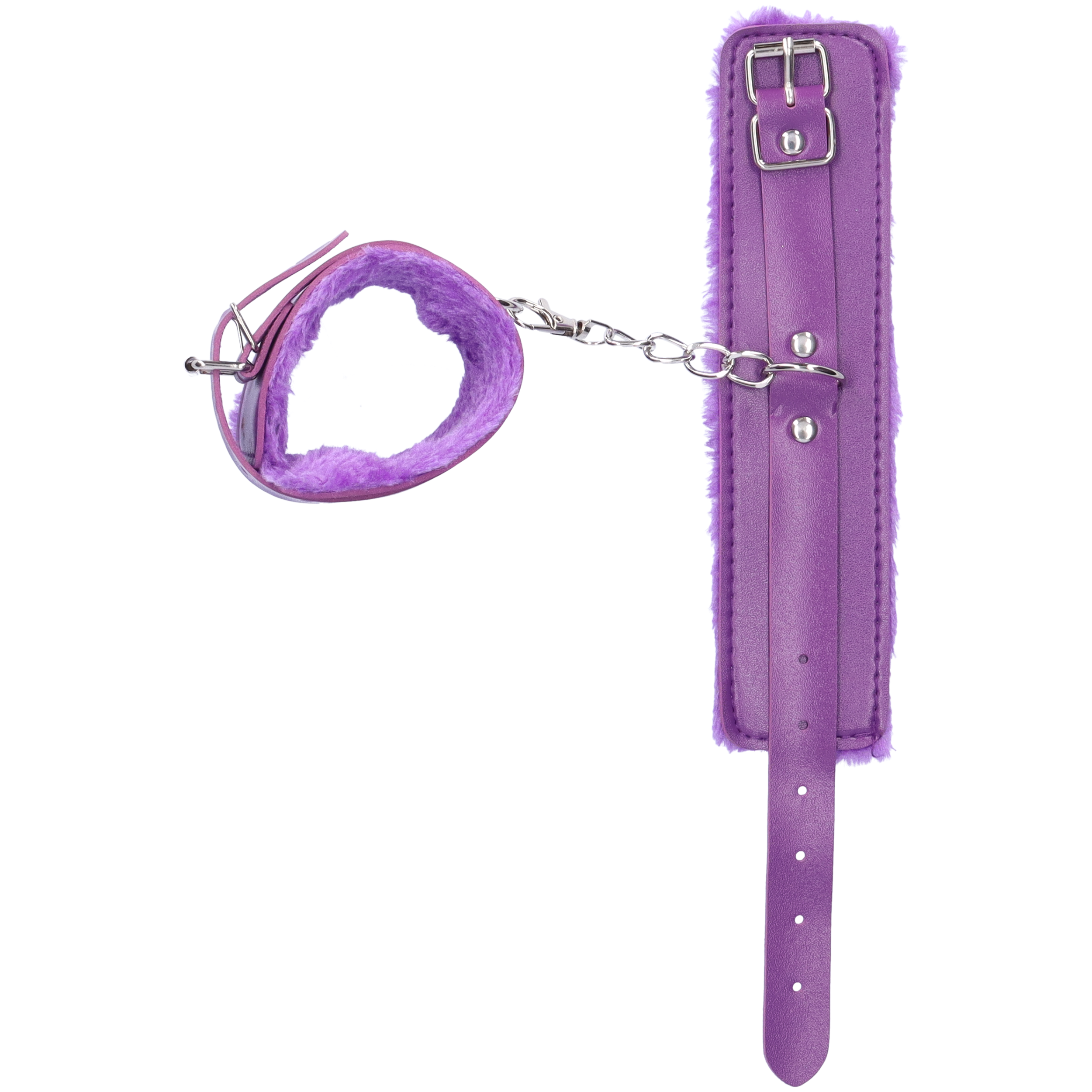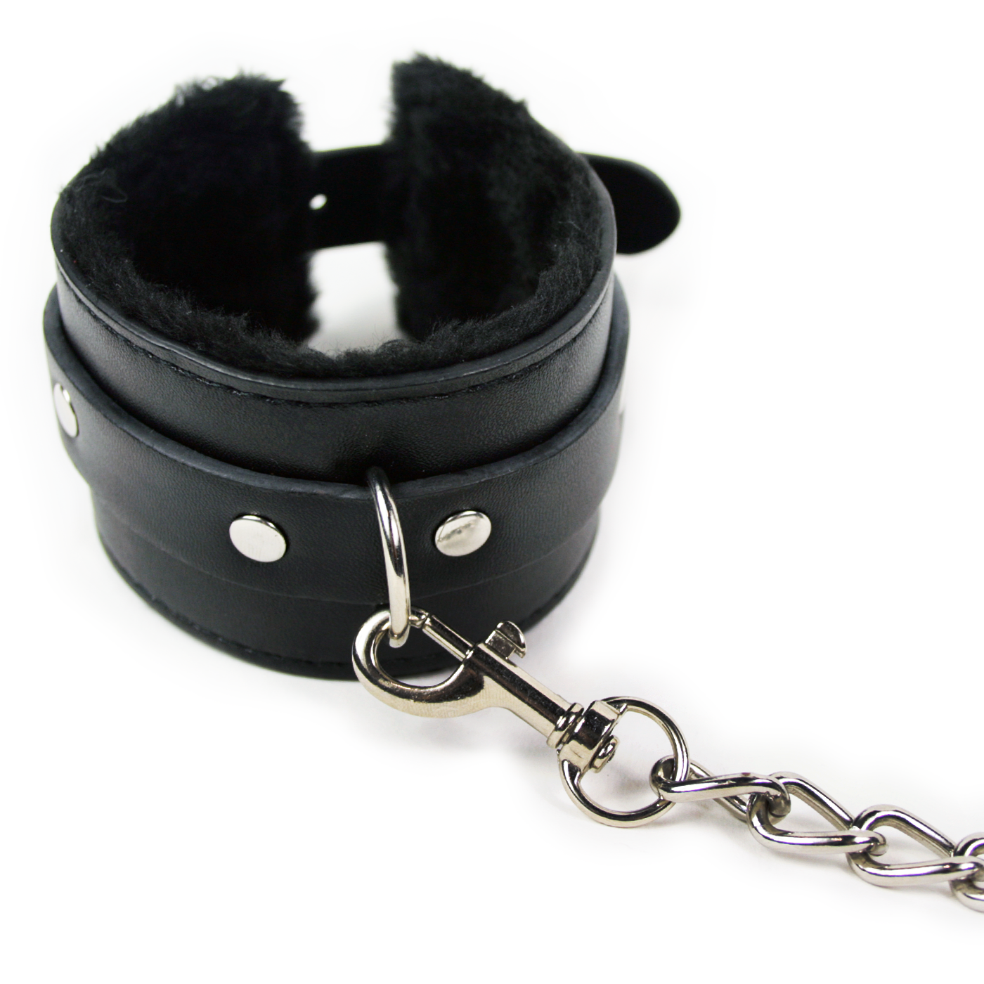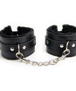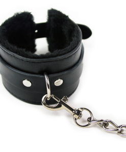 Slap on the cuffs and introduce BDSM & roleplay into the bedroom with these sexy faux fur lined leather wrist cuffs! Sexy and stylish. these bondage cuffs are fully adjustable for comfort and fit most wrist sizes. Great for bondage play novices and perfect for BDSM enthusiasts. these cuffs feature durable quick-release metal clips that are attached to a chain so you can fasten them to the bedpost. chair. or wherever your desires take you! Your subject won’t be able to escape anytime soon. Cuffs fit wrists 5 – 11 around.