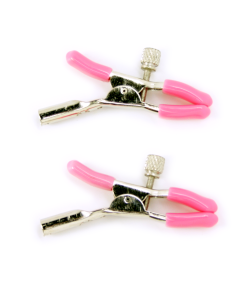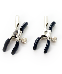 Add some pinch to your playtime with a set of versatile. adjustable nipple clamps! These clamps feature an adjustable screw so you can personalize your pain or pleasure. Each clamp also has a small accessory hole on the handle which you can use with other restraints. clips. or attachments. The only limit is your own mind!