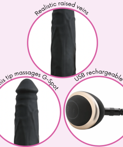 First Impressions – This realistic vibrator has incredibly strong vibrations. a smooth. velvety feel. and a classy black and gold design! This toy is part of TooTimid’s Luxury Line and comes in a high-quality black box that is perfect for discreet storage! The package also includes a USB charging cord and operating instructions.