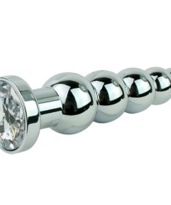Beaded Metal Anal Fetish Plug with Crystal Base