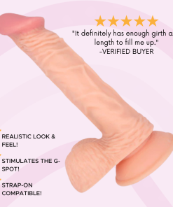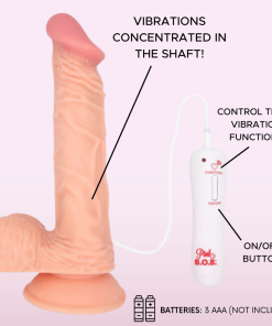 The look and feel of our best vibrating dildo will blow your mind! This dildo is sculpted to deliver the size. feel. and pleasure of the real thing. Our vibrating dildo with balls is super flexible with a veined texture and realistic-looking balls. and it feels as good as the real thing. This toy can give you hours of pleasure and multiple orgasms!