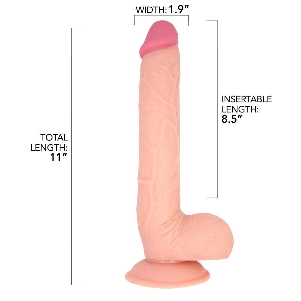 Stick the suction cup base to any smooth. flat surface to ride the Big Guy hard & deep! Your hands stay free so you can have the most lifelike experience and fulfill all your fantasies for a long 11 stud! The wide base is also compatible with most O-ring style harnesses for erotic strap-on fun with a partner!