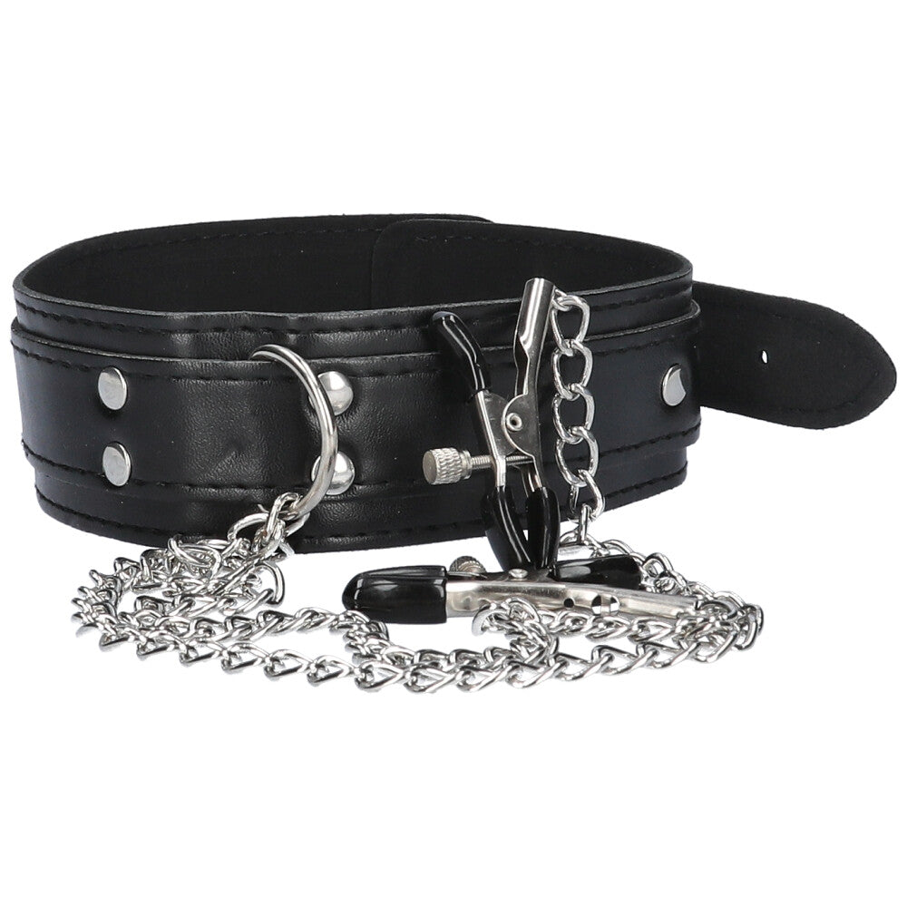 Black Collar with Nipple Clamps