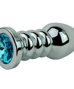 Blue Jewel Rippled Metal Booty Plug – Available in 3 Sizes!