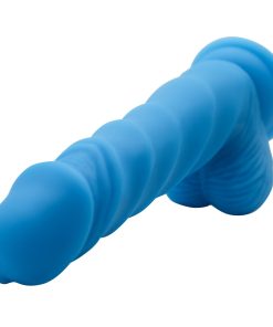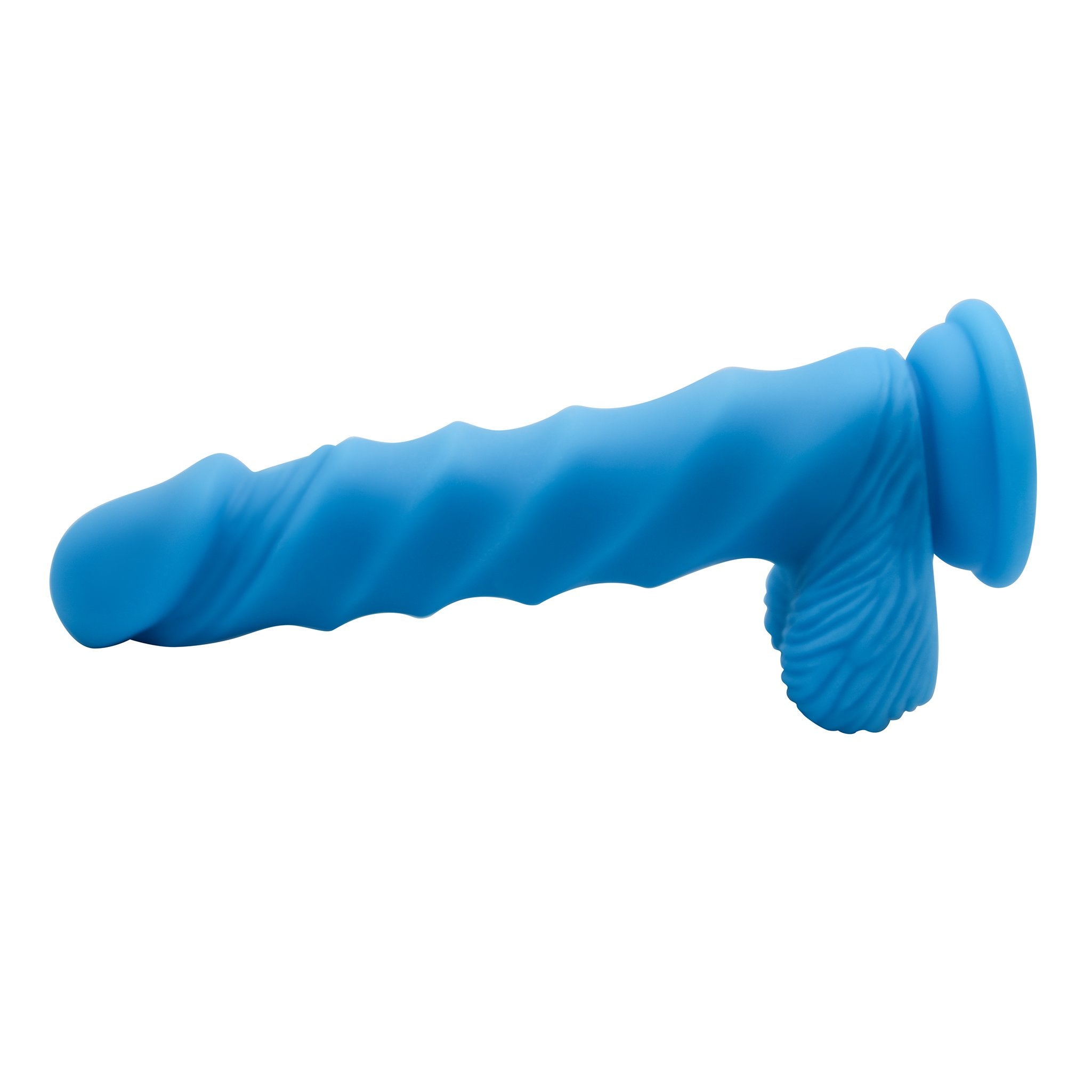Blue Rippled Silicone G-Spot Dildo With Balls