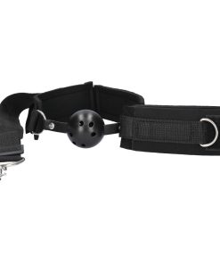 Push the boundaries of your primal desires with this scandalous breathable ball gag with cuffs!