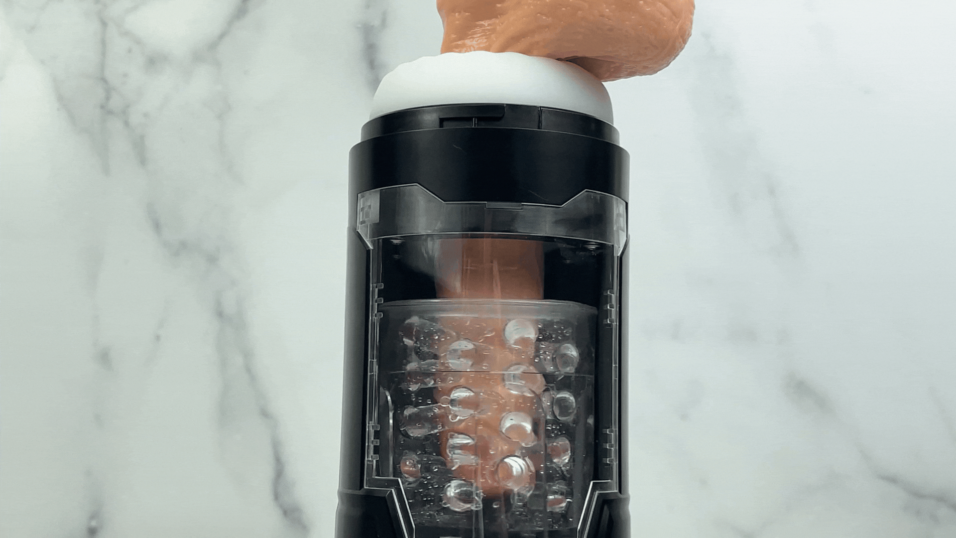 How do I use this masturbator? To turn this machine on. press and hold the up/down button. Quickly press the same button to begin the thrusting. Press the lightening button to scroll through the vibration functions. Use plenty of  to ensure a slick slip and slide off your dick as this masturbator thrusts on you!