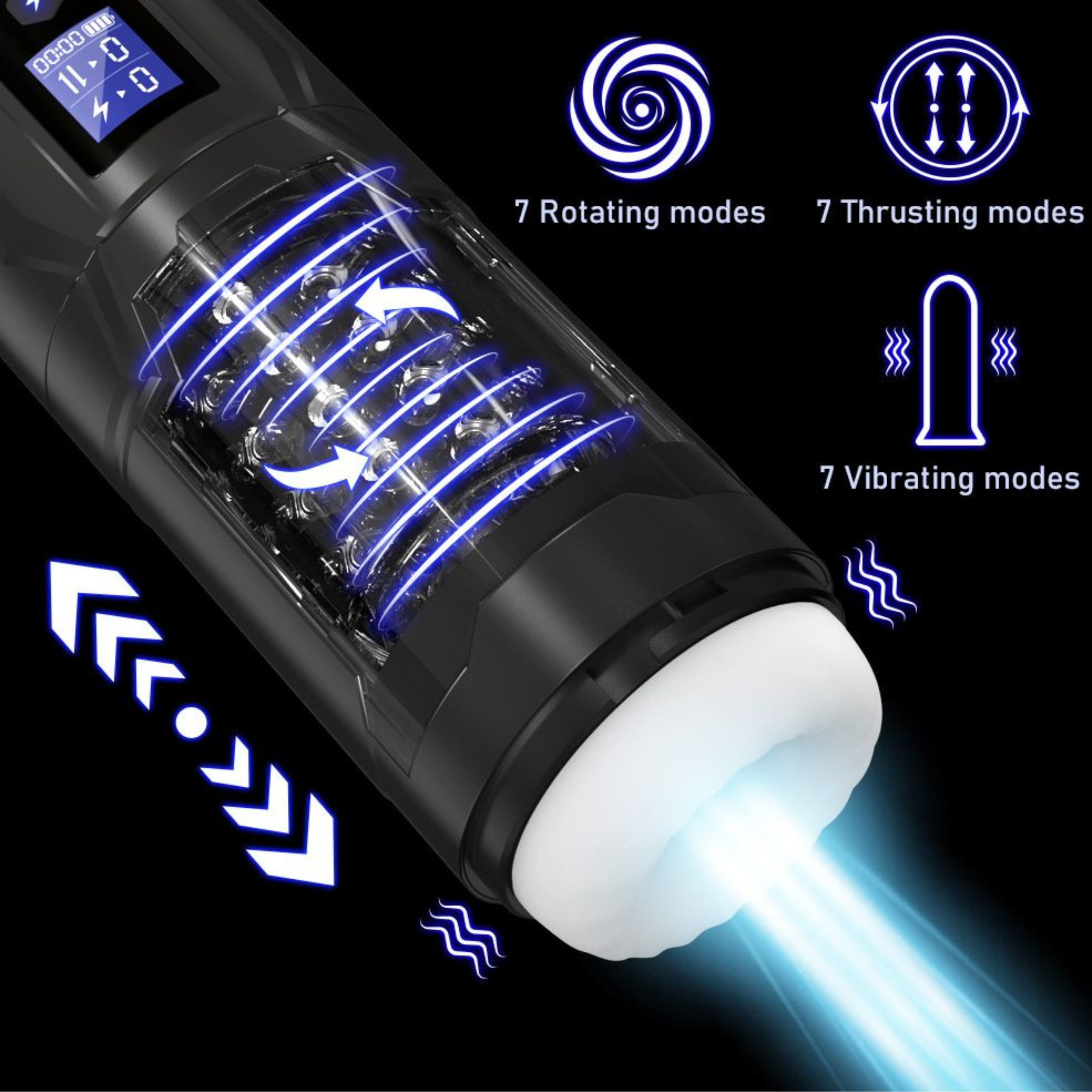 • 7 vibration. thrusting and rotation modes can be used together or separate!