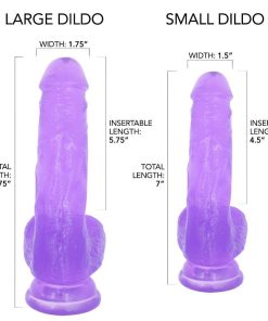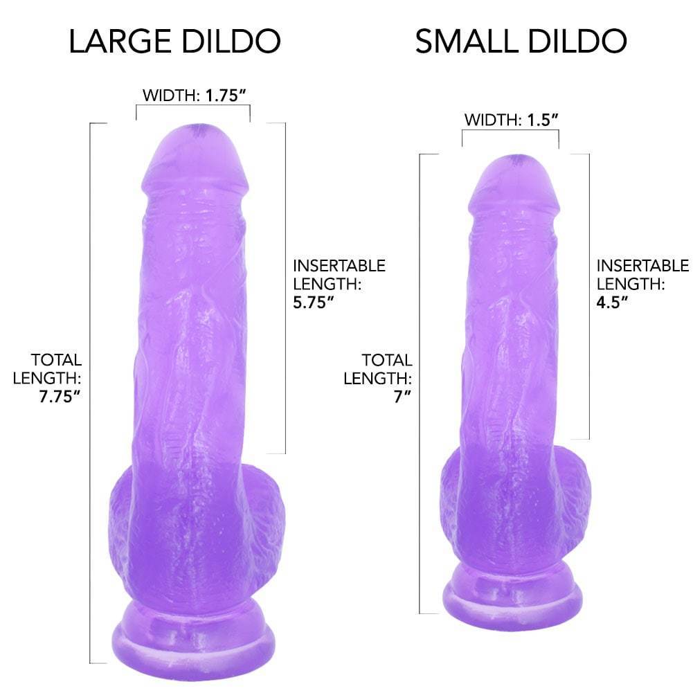 This suction cup dildo has the realistic texture you crave in a fun & flirty purple color! The flexible jelly shaft is easy to insert and bends to massage your G-spot for intense internal orgasms! The Crystal Dildo is available in 2 different sizes- the small size is great for beginner toy users. while the larger size will satisfy those looking for a long & thick realistic dildo!