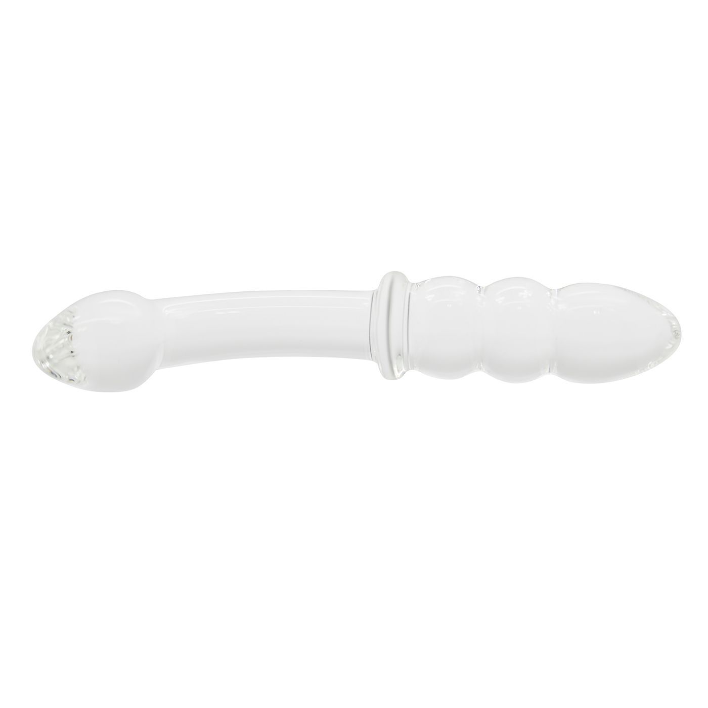 Experience the gushing G-spot orgasms you’ve been craving with this dual-ended dildo! This glass massager has a bulbous tip on one side that is perfectly curved for G-spot or prostate stimulation to give you an intense orgasm! You can grip the rippled handle to easily thrust and twist this firm dildo on your G-spot to build to an explosive climax! The beaded end can also be inserted if you want to enjoy different sensations. and the smooth beads are great for erotic anal play! Experiment with temperature play by holding this glass toy under warm or cool water for even more exciting sensations to heighten your sexual arousal! The smooth. non-porous material is hypoallergenic and cleans up easily with antibacterial toy cleaner or soap and warm water. With so many different ways to play. this two-sided glass dildo is sure to please! Includes a discreet velvet storage bag to protect this luxurious toy!