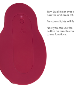 Turn on: Turn the Dual Rider over and hold the power button on the back of the vibrator for three seconds to turn on. The power indicator light will turn on. and the function lights will flash.