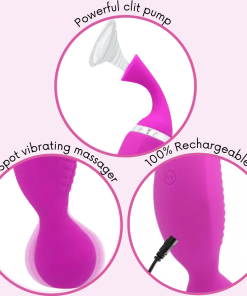 Experience the ultimate clitoral stimulation for an explosive orgasm! With a clit-sucking pump on one end and a powerful  on the other. this versatile tool lets you tease your clit and other erogenous zones for an amazing climax! The soft cup of this clit-suction toy forms a comfortable seal around your clitoris. pulsing and sucking on your clit for an erotic sensation!The suction of this clit-sucking toy also increases blood flow to the clitoris. making the bundles of nerve endings there even more sensitive to the touch so you experience faster. easier. and more intense orgasms!