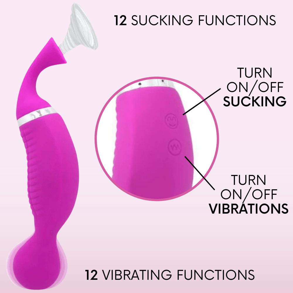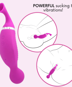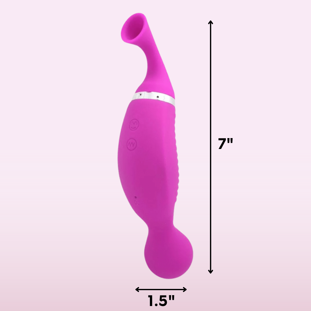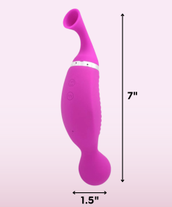 • What’s so special about that? This dual-action clit-sucking toy is a truly unique and versatile pleasure tool! The combination of erotic sucking sensations from the clitoral pump and the ultra-strong vibrations from the wand massager makes it easy to achieve an intense orgasm or even multiple orgasms! With separate controls for the vibrating and sucking settings. you can build your orgasm by using the suction first. the vibration first. or both at the same time! We love that the mouth of the clit sucker is very flexible and fits all body shapes. The textured handle of this unique vibrator with clit suction provides a secure grip and is ergonomically curved to make it comfortable to hold no matter which end you’re using! This multi-function clit-sucking toy is great for anyone who loves powerful body wand vibrations and stronger clitoral orgasms!