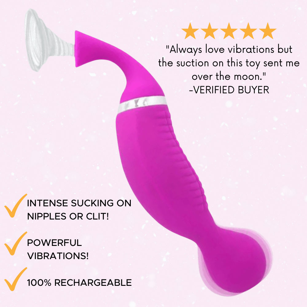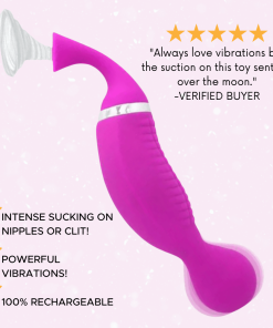 • So what’s it good for? This dual-ended clit-sucking toy has a powerful suction pump to heighten sexual arousal. plus a vibrating wand head on the other end that is perfect for your clit! The intense suction increases blood flow to the clitoris or nipples. making them more sensitive to the touch so you experience a bigger. faster. more explosive climax!