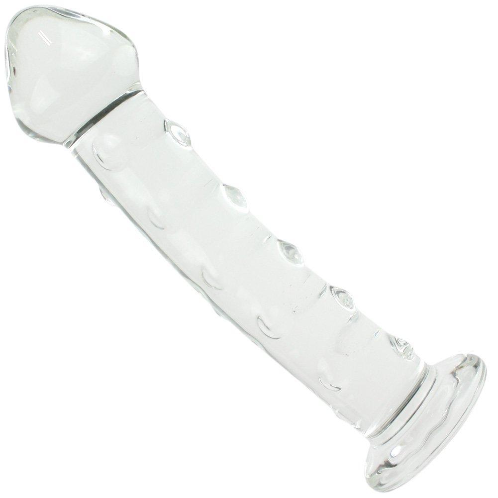– So what’s it good for? The sculpted tip is solid. sleek glass that makes it easy to insert. and thrust in and out. It’s comfortable to fit into your G-spot and massage you to a juicy orgasm. The shaft is covered in textured bumps that will rub against your inner walls for added sensation.
