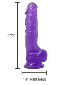 Have an intense ride with this realistic feel suction cup dildo! The sculpted penis tip has a thick ridge to massage your G-spot for an explosive orgasm! Raised veins cover the shaft for added sensations as you thrust this toy in and out! You can stick the suction cup base to your headboard or shower wall for lifelike hands-free masturbation! Fulfill a threesome fantasy with your partner with this purple dildo! The soft jelly material bends to comfortably contour to your body in all your favorite sexual positions! The flared base also makes this suction cup dong compatible with most strap-on harnesses so you can enjoy kinky role play and strap-on sex! Whether you use this impressive stud to enhance your next sensual solo adventure or for harness sex as a couple. you will love the realistic texture and generous girth of this playful jelly dildo!