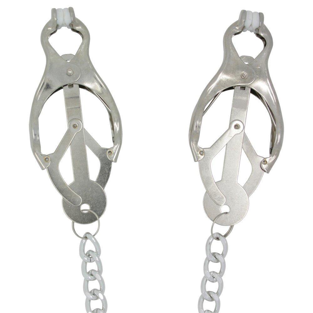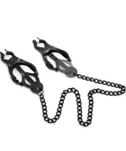 These nipple clamps provide intense pressure and pleasure to get your play time started off right! The unique clover clamp is designed to give a tight and secure grip that will make her cry out in pleasure. you will wonder why you haven’t tried these sooner. A sexy chain dangles between the clamps that intensifies the pressure with every swing. sending incredible stimulation through your body with every movement. Heighten your sensitivity with these unyielding clamps and watch how even the slightest movement becomes even more sensual and erotic.
