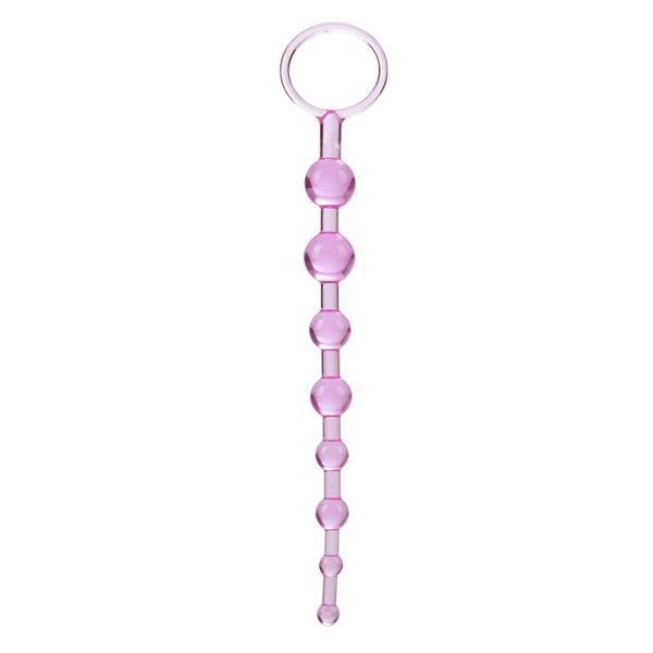 Flexible. slim. graduated pleasure beads with an EZ retrieval ring. Designed and sized for the introductory user.