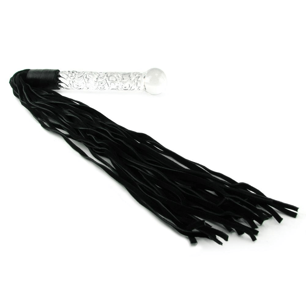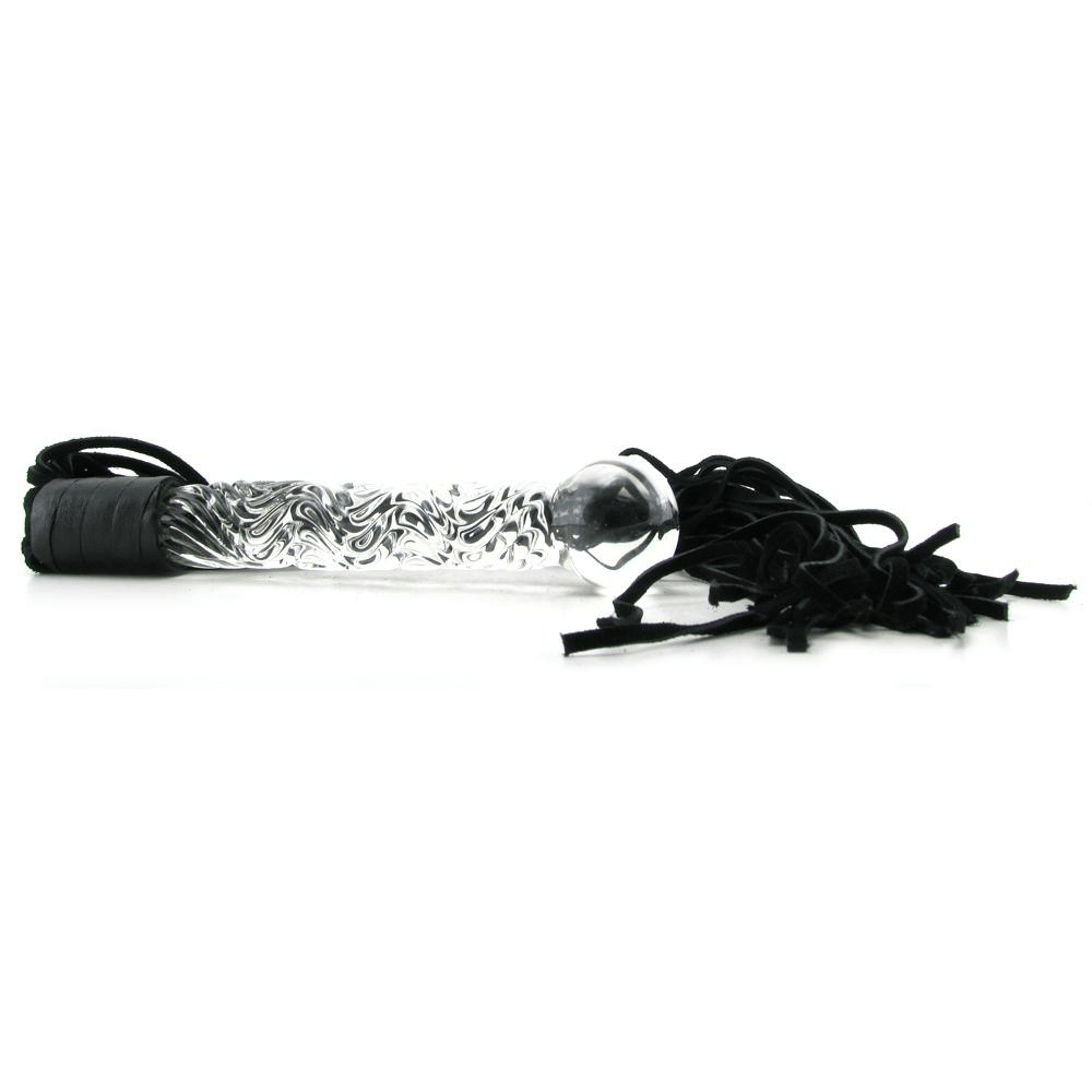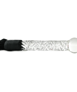 The glass Cat-O-Nine Tails features genuine bull leather tresses that are soft enough for beginner play but heavy enough to deliver a firm whack! The heavy-duty weighted glass handle is hand-blown and doubles as a glass dildo for vaginal or anal play. The beautiful textured swirls provide added stimulation. and the glass handle can be heated or cooled for tempting temperature play.