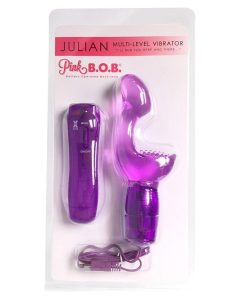 We took our Pink B.O.B. best seller Liam. and reinvented him for even more pleasure! Julian has everything you love about Liam. the thick. angled tip that seeks out and caresses your g-spot. the soft textured external teaser tickles your clitoris and of course. the powerful vibrations! The thing that takes Julian to the next level is the multi-function controls! Now you can enjoy intense vibrating and pulsating pleasure at the touch of a button!