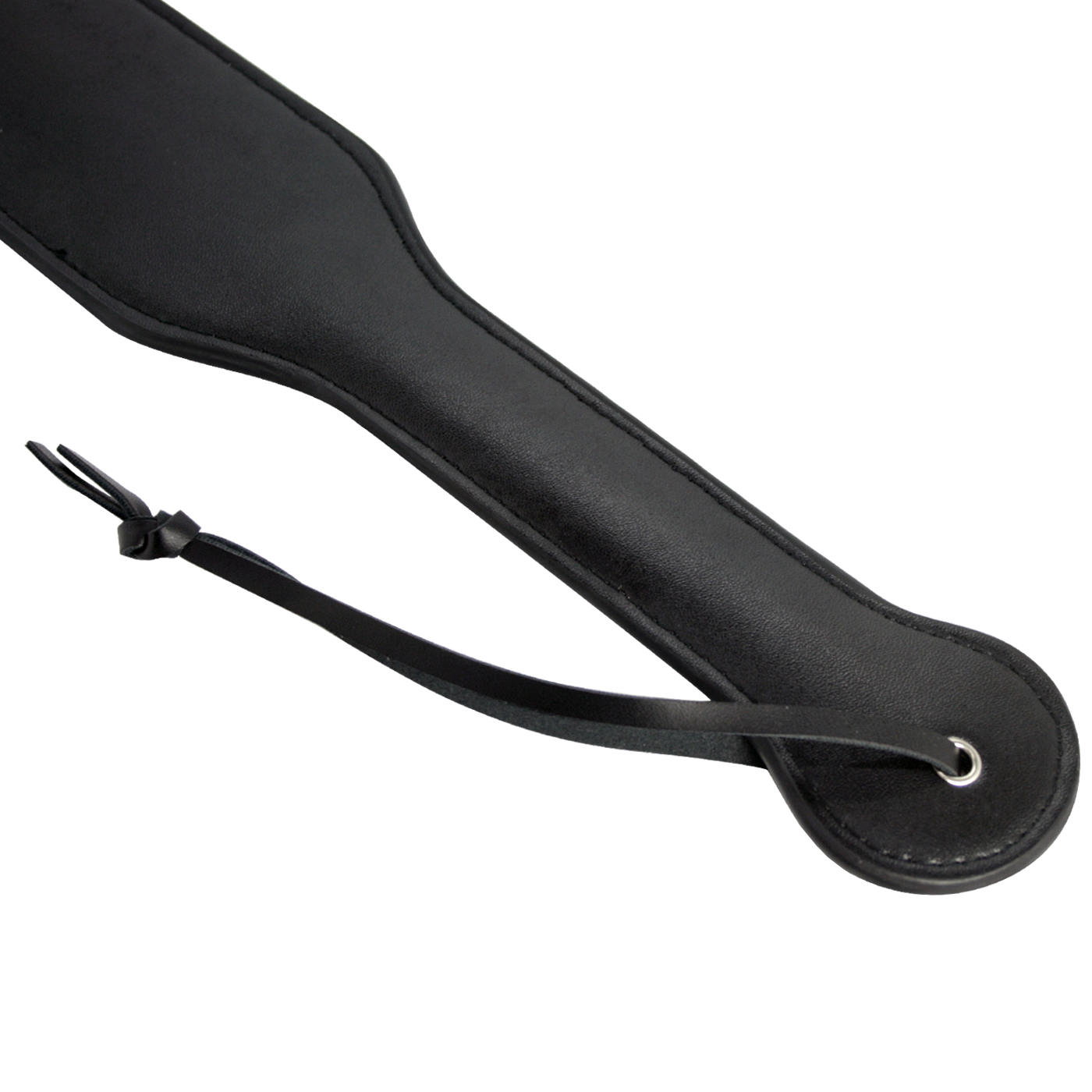 Add a lot of pain and a little pleasure to your next BDSM or fantasy play experience! This long leather bondage paddle is designed with the optimal surface for spanking! Its non-intimidating design makes this dominant-submissive paddle perfect for beginners who are looking to incorporate light impact play or experienced BDSM users looking to add more fun to their kinky bedroom experiences. This sex paddle features a firm core throughout the center allowing for powerful spanking and a hanging loop that is ideal for maximum control. security. and storage! Stroke your lover’s body with the leather paddle to build excitement before spanking them hard and making their ass tingle!