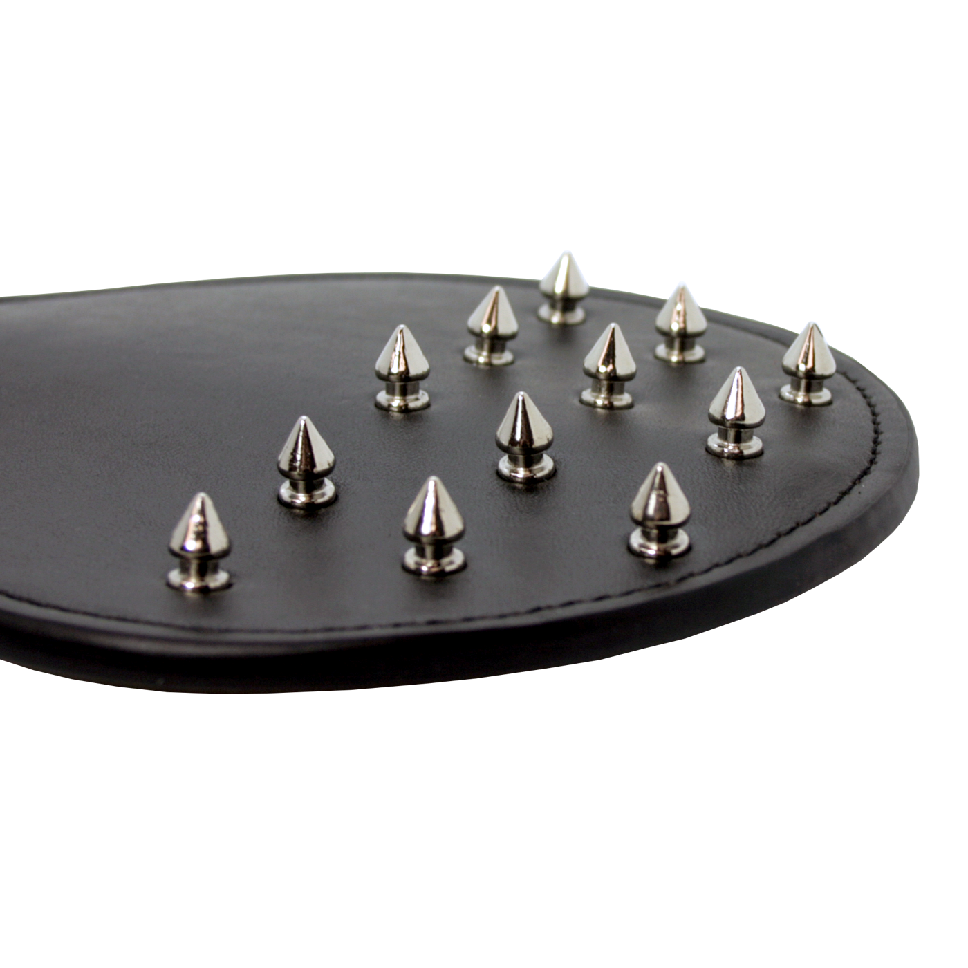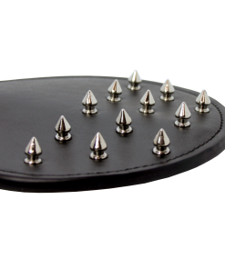 Put an extreme twist on your classic paddle with this leather spiked spanking paddle! It’s dual-sided and offers two levels of pleasure whether its the smooth side or the side with metal studs! Keep your partner guessing as you flip it around and mix the sensations. Enhance foreplay and heighten your submissive’s senses as you glide the metal spikes gently over their body for tantalizing play. Designed with maximum spanking potential. this sex paddle features a reinforced. firm core making it super sturdy and allowing for the ultimate powerful slap that will leave your partner stinging!