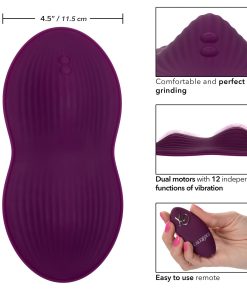 This remote control dual motor massager is equipped for intensely satisfying hands-free solo play! Indulge all your erotic fantasies with an intimately contoured shape perfect for grinding. and two powerful motors with independent controls to customize your experience. Use the remote control or the buttons on the vibrator to effortlessly cycle through the 12 different functions of strong vibration and pulsation patterns. You can even hand over the wireless remote to your partner and let them change up the vibration modes while they watch you squirm with delight!