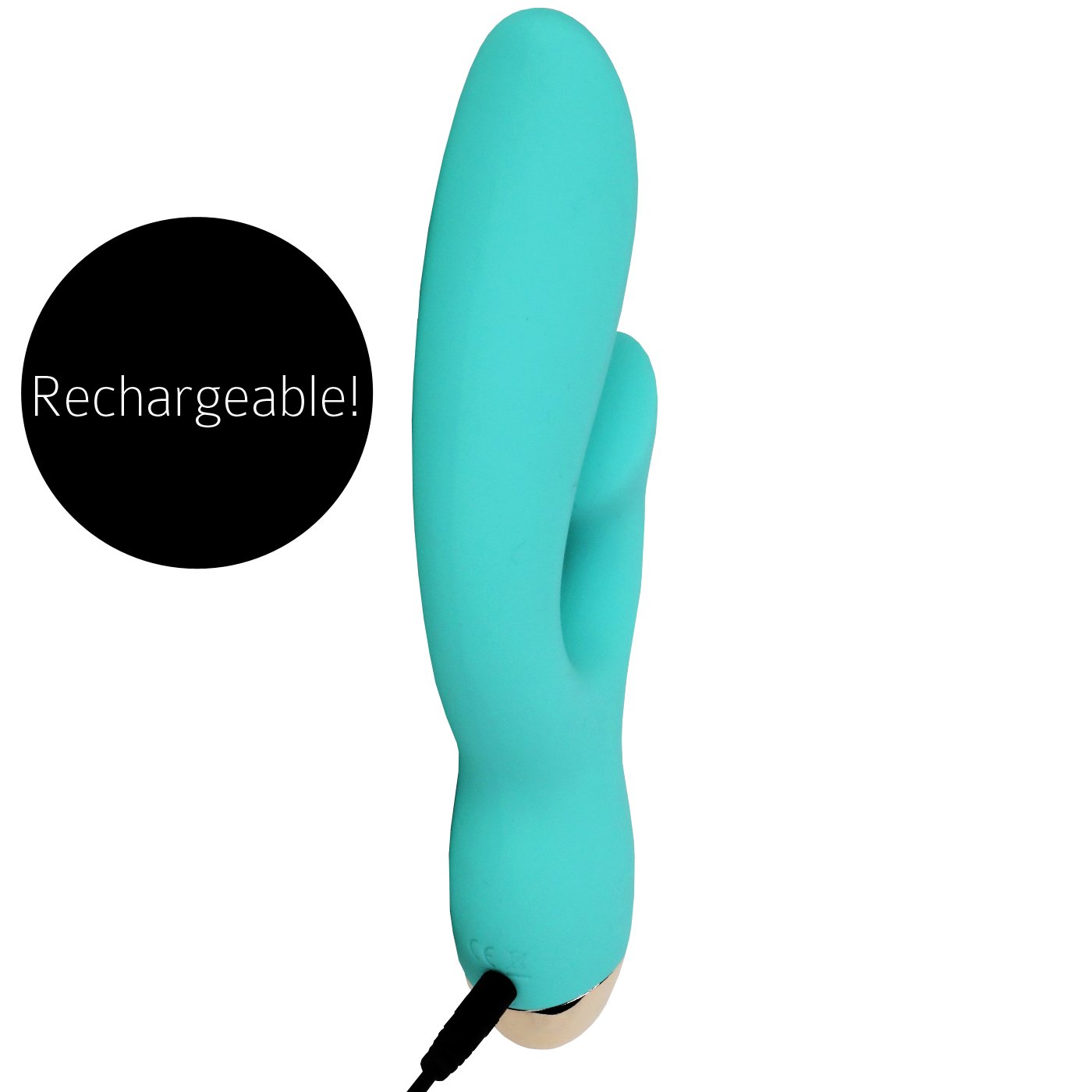 This elegant dual-action vibrator is designed with your maximum pleasure in mind! This luxury vibe has a unique shape that features a cushioned. bulbous tip that is perfectly curved to massage your G-spot! While the long flexible shaft rubs your G-spot over and over. the angled clit stimulator provides you with incredible external vibrations so you can quickly reach an intense blended orgasm! With 10 different escalating and pulsating vibration modes. this ultra-powerful vibrator is 100% rechargeable so you never have to worry about replacing the batteries! This easy-to-use vibrator is great for beginners or experienced users who want to experience strong dual stimulation for a faster. stronger orgasm! You will love the silky smooth silicone material. which is hypoallergenic and easy to clean with soap and water! Enhance your solo play with this powerful rechargeable dual vibrator!