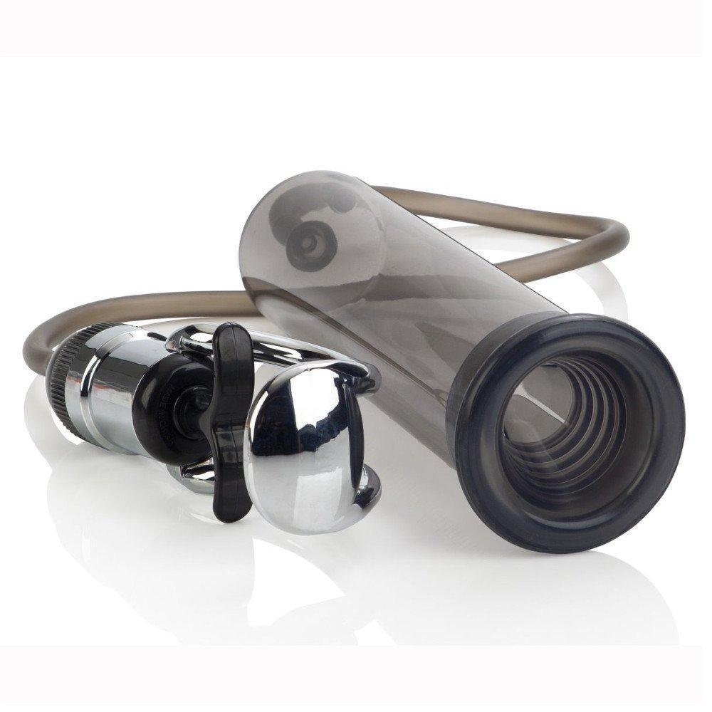 High quality enhancement pump with incredible suction for maximum results. Newly designed master grip finger pull hand pump. Flexible air hose. Quick release purge valve. Smoked cylinder with universal incremental measurements. Flanged base for use with or without the included silicone tapered sleeve.