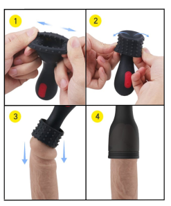 How do I get the massager sleeve over the tip of my penis? Completely fold back the sleeve and place the massager on the tip. Then. fold the sleeve back down over the entire head and you’re ready to go!