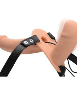 This harness is what you have been missing in your partnered play! The double donged pleasure harness ensures that both you and your partner experience the vibrating penetration that you crave! The cock that is inserted into your vagina. as well as the harness. keeps the longer dong for thrusting in place while providing pleasure! The sturdy harness sits comfortably around your hips with its thong strap design. You can now enjoy hands-free thrusting while simultaneously being filled up yourself! Each cock has 10 powerful vibrational functions that can be controlled separately or together with the handheld remote control! With its escalating and pulsating vibrations. both you and your partner will be sure to find the right rhythm to get both of you off! The sturdy leather harness sits comfortably around your hips with its thong strap design and will fit most body types. You can even secure the remote to the harness for complete hands-free fun! The body-safe silicone dildos are easy to clean. ensuring that you can get into action whenever you’re rearing and ready to go!