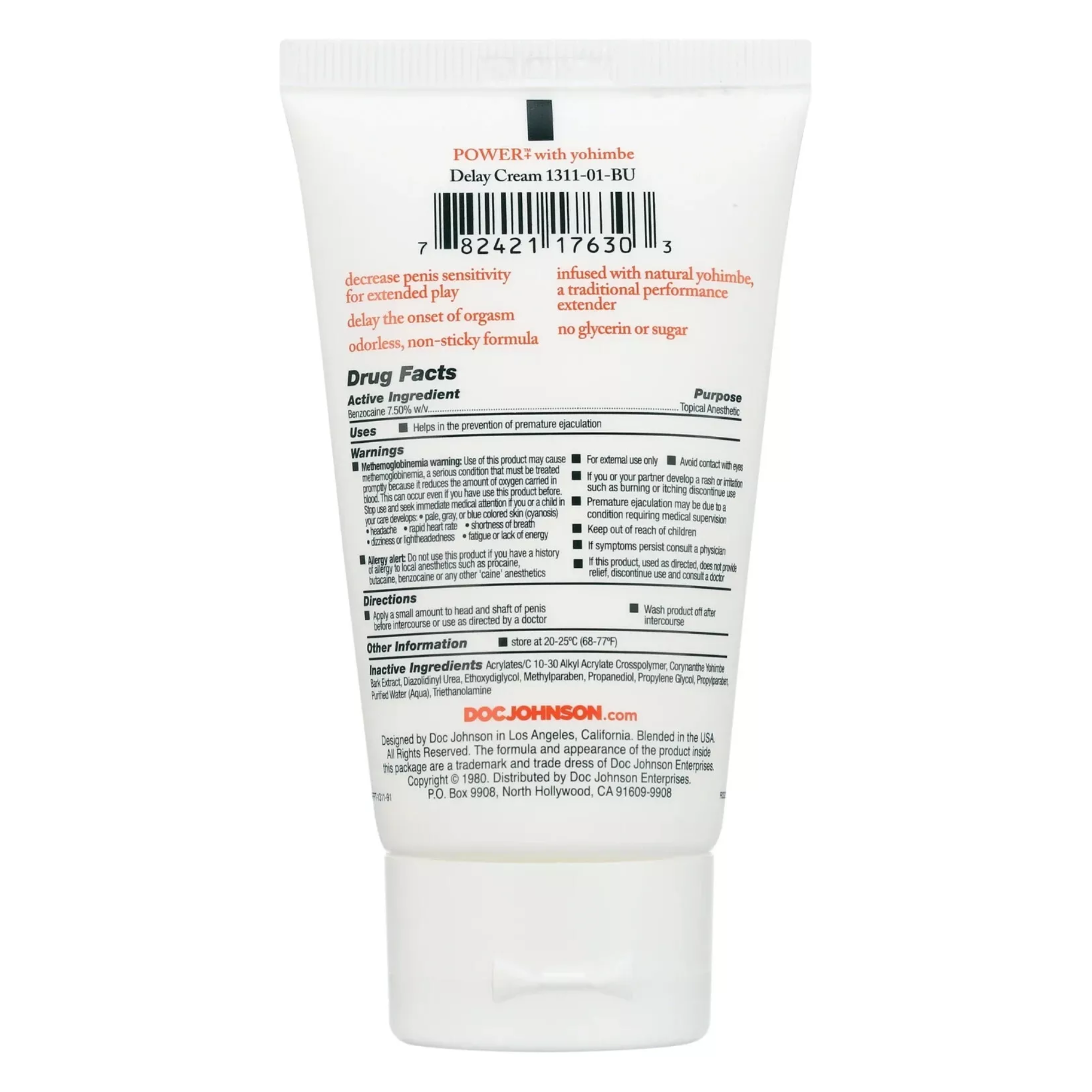 Get more banging for your buck with Doc Johnson’s Power+ cream! This cream contains 7.5% Benzocaine which acts as a desensitizing agent to help delay or prevent premature ejaculation. and is infused with natural yohimbe. a traditional performance extender. Odorless and tasteless.