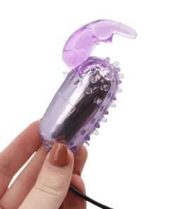 This powerful vibrating bullet has a flexible rabbit tickler and nubby texture for multiple exciting sensations to tease and please your clit. nipples. and other erogenous zones! Whether you want to use the nubby side of the bullet to caress your sensitive spots or enjoy strong pinpoint vibes from the flickering bunny ears. you will love the targeted clitoral stimulation this toy provides to bring you quickly to orgasm! Find the perfect intensity level to push you over the edge with the adjustable speed dial. or coax yourself to multiple waves of orgasmic bliss!