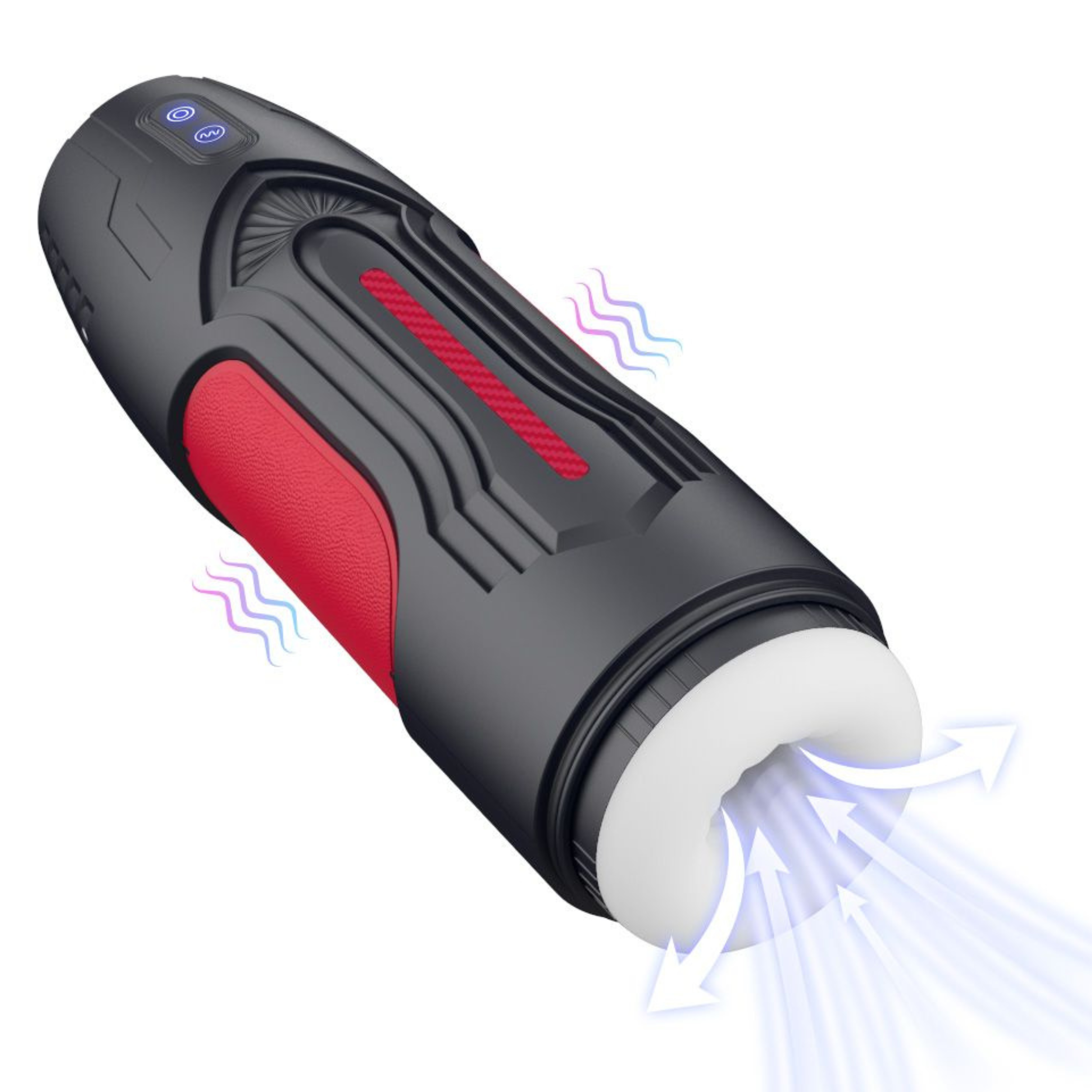 How do I use this masturbator? To turn this machine on. press and hold the round button. The round button will scroll through the 5 suction settings. Press the wavy button to scroll through the 7 vibration functions. Use plenty of to ensure a slick slip and slide off your dick as this masturbator thrusts on you!