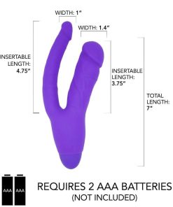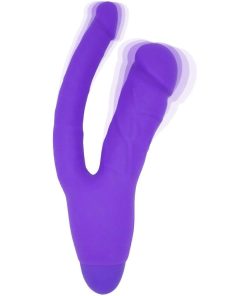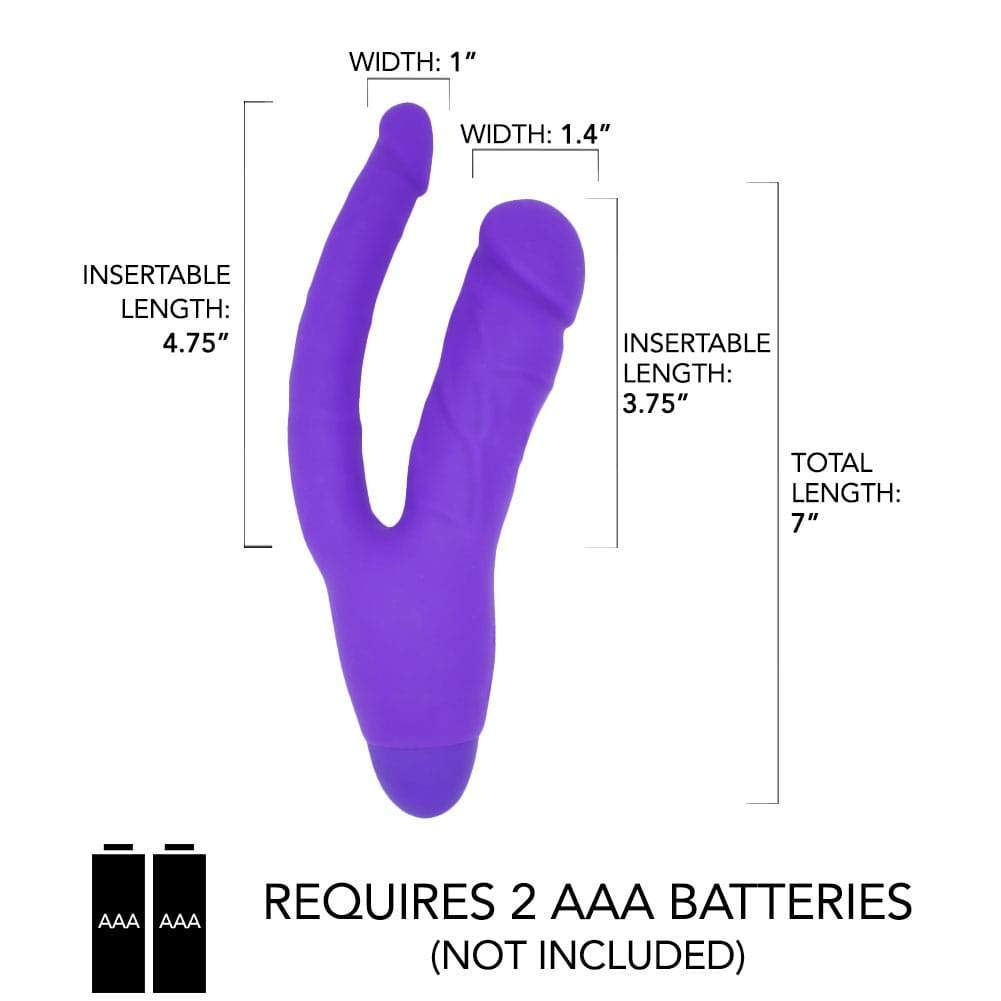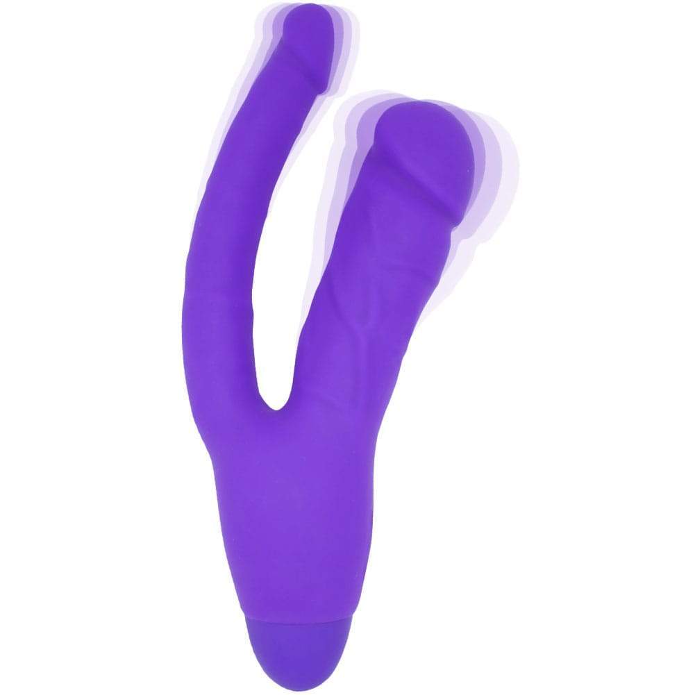 Whether you have dreamed of being in a threesome. or are simply looking to add some kinky anal stimulation to your solo play. this double penetrating vibrator combines two realistically detailed dildos into one powerful pleasure tool! The firm. but flexible internal shaft massages your vaginal walls and G-spot. while the slimmer anal stimulator gives you a fuller feeling that intensifies your orgasms for mind-blowing pleasure!