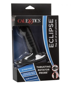 The Eclipse Thrusting Rotator Probe is perfect for beginners or erotic experts looking for anal stimulation! Enjoy the waves of orgasmic internal stimulation combined with synchronized rotating. vibrating. and thrusting functions this silicone anal toy provides. The self thrusting feature allows you to dive deep in effortless anal play! The thick tip swirls and thrusts internally. targeting his prostate once inserted. Pair the thrusting & rotating functions with the powerful vibrations for incredible backdoor stimulation. The contoured body of this toy moves with you and allows for comfortable insertion while the ergonomic shape prevents this prostate massager from slipping too deep. Recharge this massager for 90 minutes and enjoy 45 minutes of high-speed stimulation or 60 minutes of low-speed vibrations.