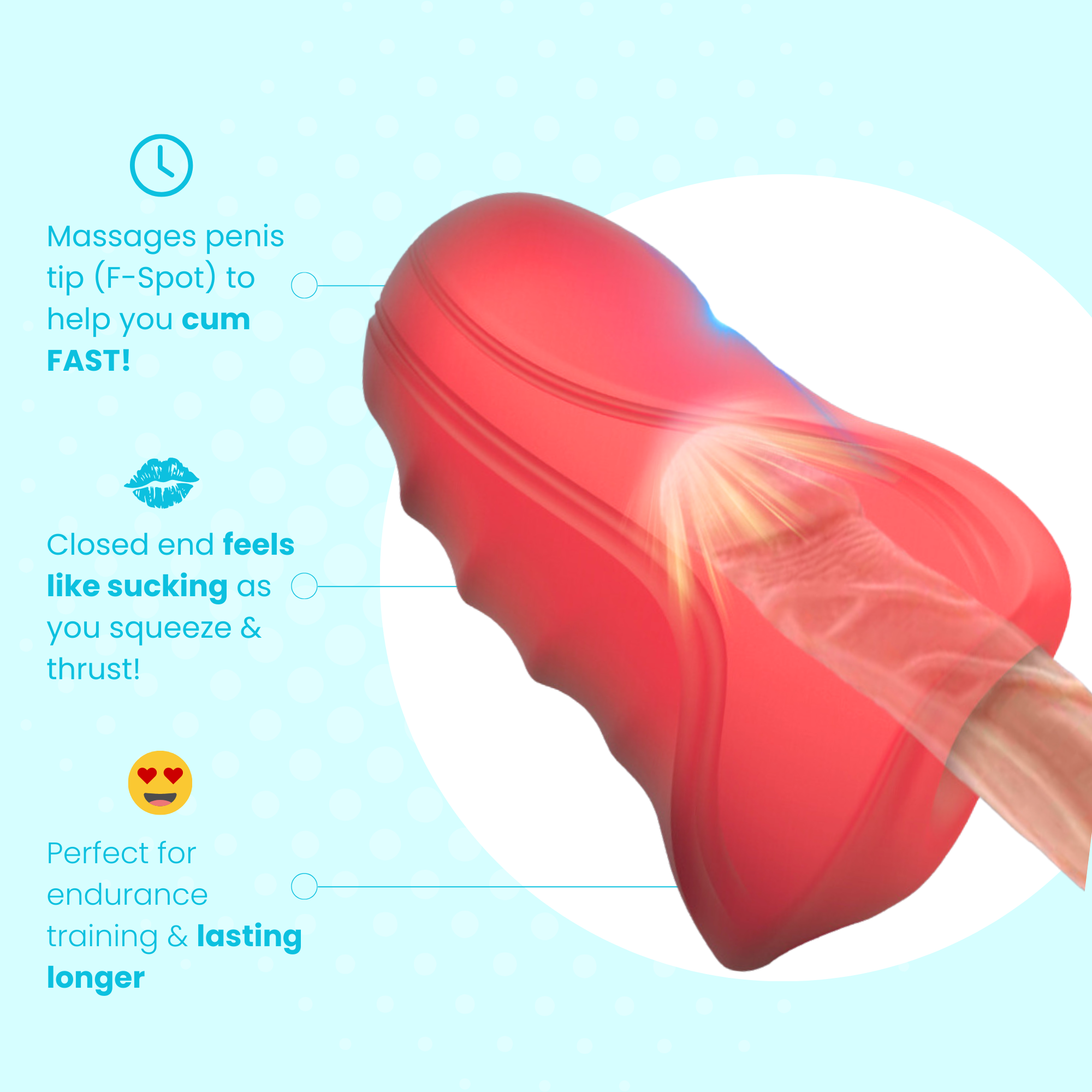 - Closed-ended design for increased suction stimulation.