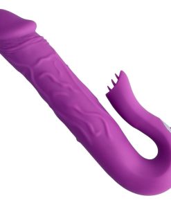 • Blended Orgasms: This toy is designed to stimulate both your G-spot and clit simultaneously. leading to intense blended orgasms! Begin with a slower pace and gradually increase the intensity of both the vibrations and rotations to build up to a powerful climax. Plus. the combo of the realistic tip and raised vein texture on the shaft gives this toy a super lifelike feel!
