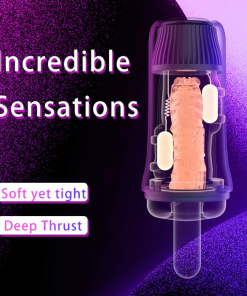 How do I use this masturbator? The internal bullets will slide into the pockets on the sides of the masturbation sleeve. Gently press the sleeve into the masturbation device. ensuring a secure fit. Use a for comfortable insertion of your penis! To turn this item on. press and hold the ’round’ button. The toy will vibrate and light up. but no functions with start. Press the ‘temperature’ button to begin warming the item. The temperature icon will flash while heating and hold a steady light once completely warmed. To begin and cycle through the vibration. press the ’round’ button. Press and hold the ’round’ button to turn this machine off.