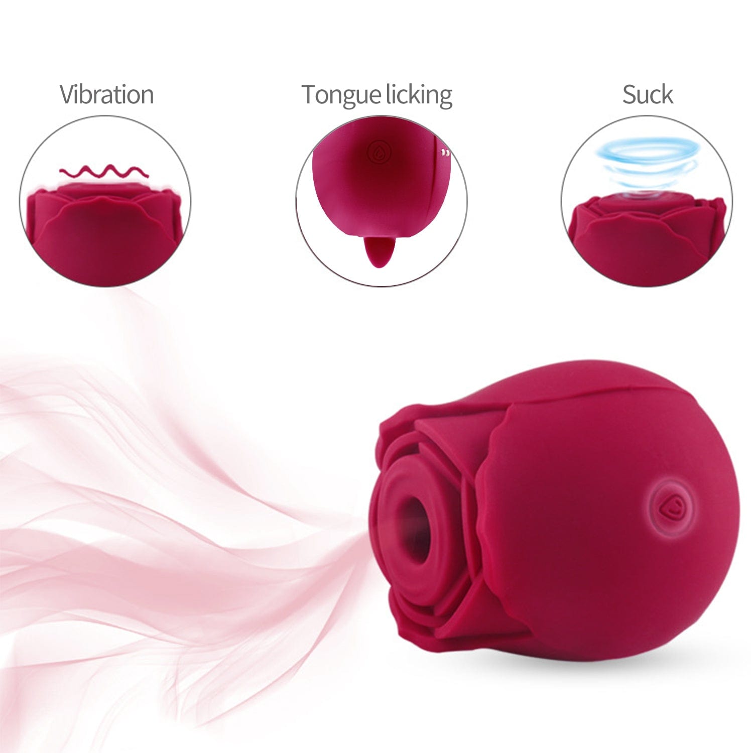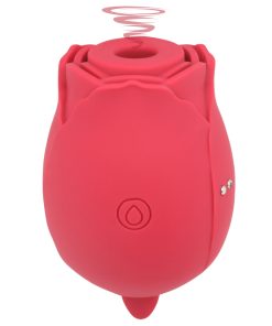 This rose bud vibrating massager allows all genders and sexual orientations to explore self-love through clit stimulation and RJ sensations! Dual-ended so you can pick your pleasure. this toy features a self-motion flickering tongue vibrator and air pulsation clitoral stimulator that provides clit sucking and oral sex sensations! To use this vibrator. gently spread the labia and place the air suction end on your clitoris. Move the rose bud in circles. back and forth. & up and down to experience the intense air stimulation sensations. To switch up the sensations. place the tongue stimulator on your clit and allow the self-motion flickering tongue to work its magic! You can also use the tongue anally for rimming sensations!