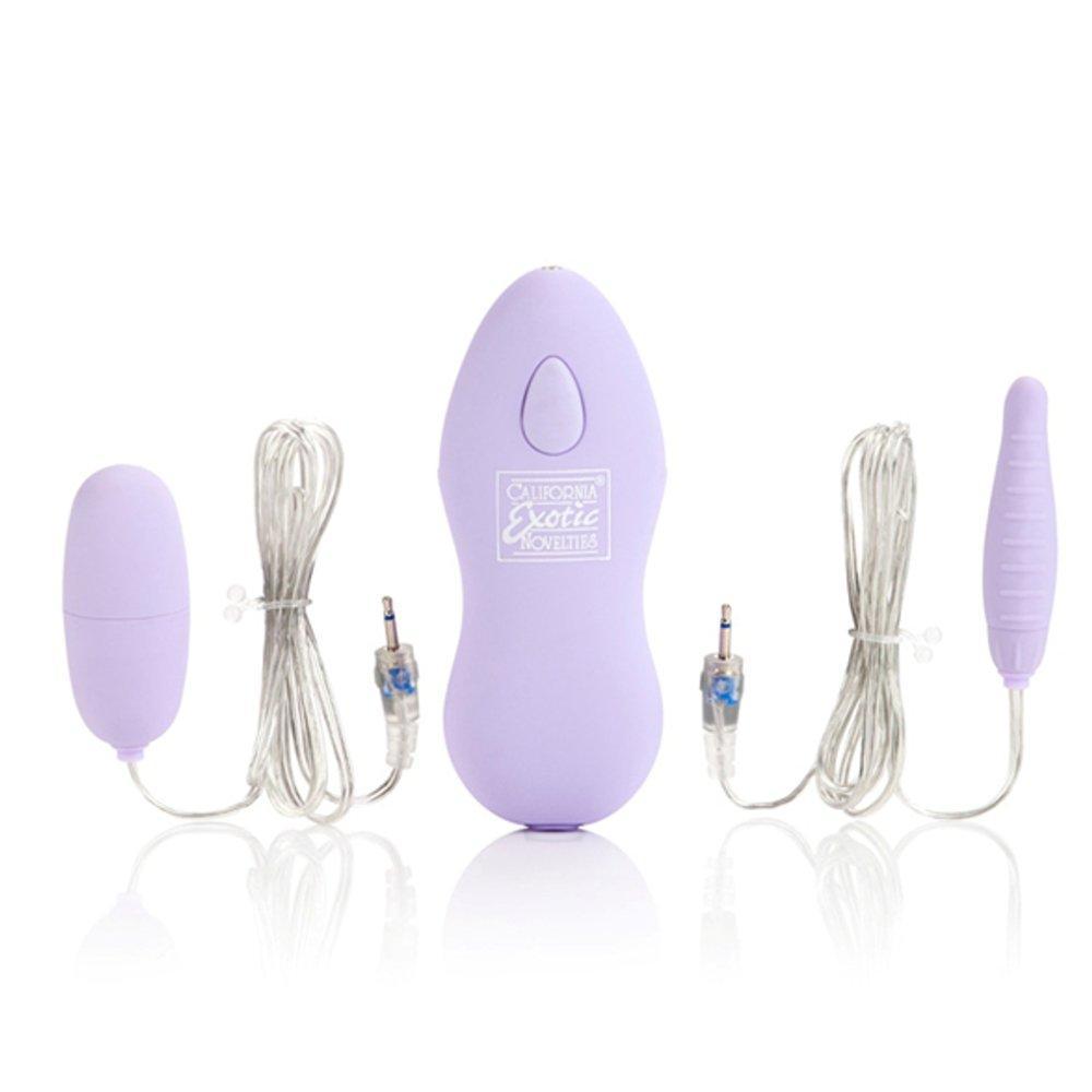 Double your pleasure potential with this Twin Pleasure Vibe set! Included are a larger smooth and bulbous classic egg-shaped vibe and a smaller.ribbed mini-teaser vibe. Plug your selected vibe into the controller. and get ready for powerful vibrations at the touch of a button! Switch easily between the 2 vibes with a simple jack-pin connection (like headphones).