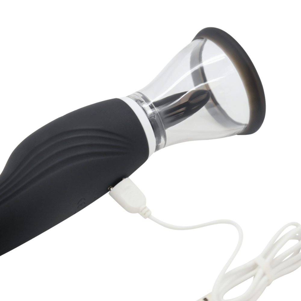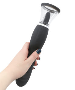 Have intense G-spot and clitoral orgasms with this luxury sex toy for women! One end of this powerful vibrator has a flickering tongue that sucks and laps at your clit to give you mind-blowing oral sex sensations! Attach either the round or oval-shaped cups to create a strong suction seal around your pussy and clit! The pussy pump attachments have a silicone edge that is ultra-soft on your skin!