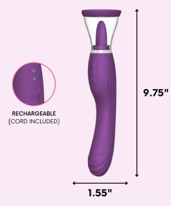 With independent controls for the tickling tongue. suction. and internal vibration. you can change things up and choose whichever type of pleasure you’re in the mood for! Tease your clit & nipples with the sucking tongue vibrator or use the curved G-spot vibe to have an intense squirting orgasm! You will love the powerful rechargeable vibrations of this versatile dual-ended clit & G-spot massager!