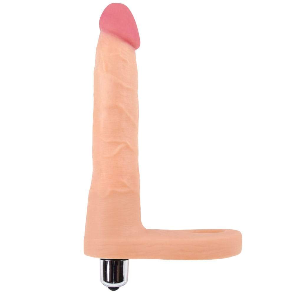 This double penetrating toy for couples is the perfect way to fulfill your fantasies or simply add some erotic anal stimulation to your next lovemaking session! The stretchy. erection-enhancing penis ring has an attached vibrating dildo so you can experience the feeling of taking two cocks at once as your partner penetrates you! You will both love the increased sense of tightness you get. that intensifies your internal sensations to help you reach stronger. more explosive orgasms!